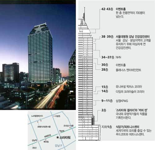 현재 센터필드의 오피스 타워 최상층에는 조선호텔 최상위 브랜드인 조선 팰리스 강남이 위치해 있습니다. 도쿄 마루노우치 오피스 복합개발인 오테마치 타워 최상층에 아만 도쿄가, 롯폰기 미드타운 타워 최상층에 리츠칼튼 도쿄가 있는 풍경을 떠올리게 하죠.