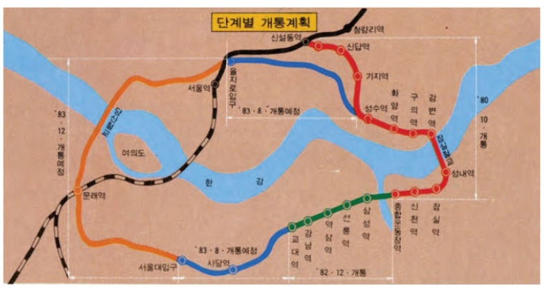 서울 전체의 과밀을 막을 순 없었지만 적어도 강북의 기능 분산에는 어느 정도 성과가 내기 시작한 1977년, 서울시는 서울의 중심 기능을 3개 핵으로 분산하겠다는 계획을 세웁니다. 주거지 위주로 시작한 강남 개발의 축을 중심지로 상향, 확대하겠다는 것이죠. 기존의 강북 도심은 국가의 중심으로, 여의도·영등포는 산업의 중심으로 강남은 금융업무 기능 분산이라는 방향성을 정했습니다. 이러한 3핵 도시의 논리로 추진된 지하철 2호선 개통은 주거 외 기능이 강남에 집중적으로 도입되는 계기를 마련하게 됩니다.