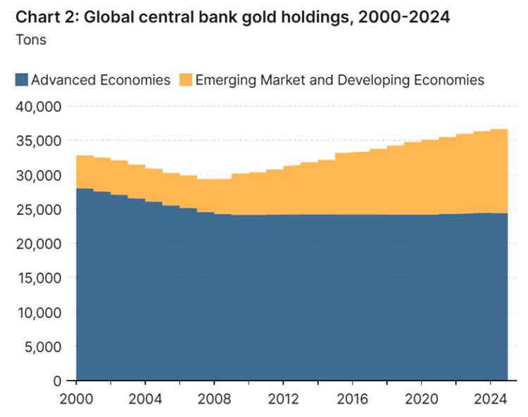 이 흐름의 중심에는 전 세계 중앙은행들이 자리 잡고 있습니다. 브루킹스 연구소는 2026년 2월 보고서를 통해 세계금협회(WGC)의 데이터를 인용하며, 중앙은행의 금 순매입량이 2024년 1,092톤에 이어 가격 급등기였던 2025년에도 863톤을 기록했다고 밝혔습니다. 이 흐름을 단순 평균으로 환산하면 2024년 이후 매 분기 200톤을 웃도는 강력한 매수세가 유지되고 있다고 볼 수 있어요.