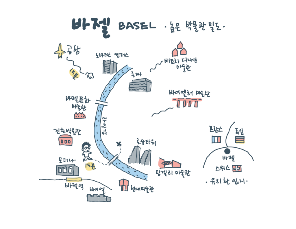 스위스 바젤은 서울 용산구와 비슷한 면적에 40여 개의 박물관과 미술관이 분산 배치되어, 10분마다 문화 시설을 마주치는 높은 ‘박물관 밀도’가 특징입니다.