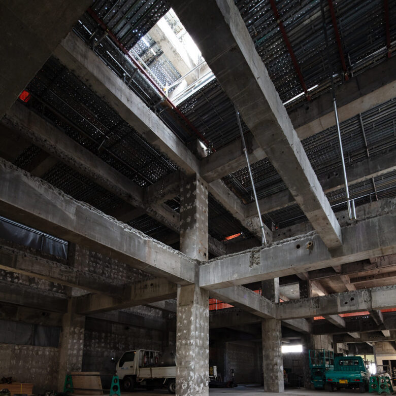 처음 현장을 방문했을 때 본 호텔은 평범한 객실들로 차 있는 4층짜리 콘크리트 건물에 불과했지만, 후지모토는 이 틀을 과감히 비틀었다. 내부 바닥을 걷어내고 기존 구조를 노출시키며 건물 중심에 큰 아트리움을 만들어, 누구나 드나들 수 있는 ‘열린 거실’을 마을 안에 심자는 제안이었다.