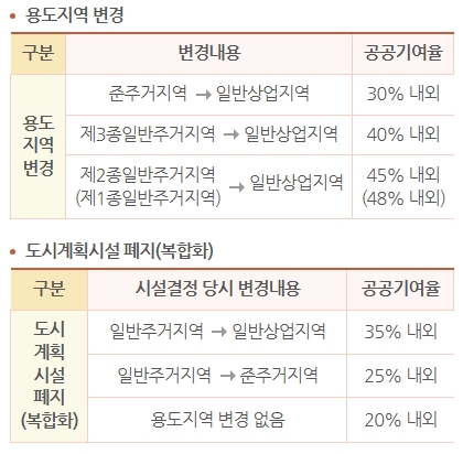 개발을 추진하다 보면, 개발 밀도가 높아지는 방향으로 용도지역이 상향되는 경우가 종종 있습니다. 1종 또는 2종 일반주거지역에서 준주거지역이나 일반상업지역으로 땅의 용도가 바뀌면 용적률은 150~200%에서 400~800%까지 높아지는 식이죠. 용도지역 변경만으로 토지의 가치가 몇 배 높아지는 셈입니다. 또는 도시의 여건 변화에 따라 더 이상 필요 없는 도시계획시설4을 없애는 경우도 있어요. 이때에도 개발의 장애요소가 사라지는 것이라 개발가치가 상승하게 됩니다.