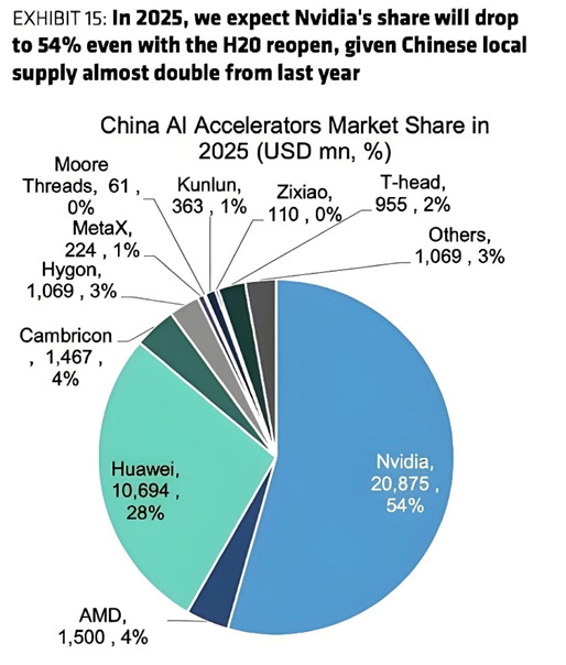 물론 캠브리콘이 차지하는 비중은 그리 크지 않습니다. 번스타인에 따르면, 지난해 기준 중국 AI 반도체 시장에서 캠브리콘이 차지한 비율은 1%에 그쳤습니다. 66%에 달하는 엔비디아는커녕 화웨이(23%)와 AMD(5%)에도 한참 못 미치죠. 올해도 4% 남짓일 것으로 예상되고요. 그러나 중국 정부가 반도체 자립을 외치는 한 캠브리콘은 수혜를 입을 테니 성장세를 이어 나갈 수 있겠죠.