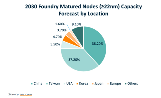 중국은 막대한 내수 시장을 바탕으로 생산 능력을 끌어올리고 있습니다. 욜그룹에 따르면, 지난해 기준 중국의 파운드리 생산 능력(≥22nm)은 글로벌 시장의 21%를 차지했습니다. 1위인 대만(23%)을 바짝 뒤쫓는 수치로, 우리나라의 19%보다도 높죠. 그뿐만 아니라 업계에서는 중국이 2030년이면 전 세계 파운드리 생산의 30%를 차지하며 글로벌 1등 파운드리 국가가 될 거라는 전망이 나오고 있습니다.